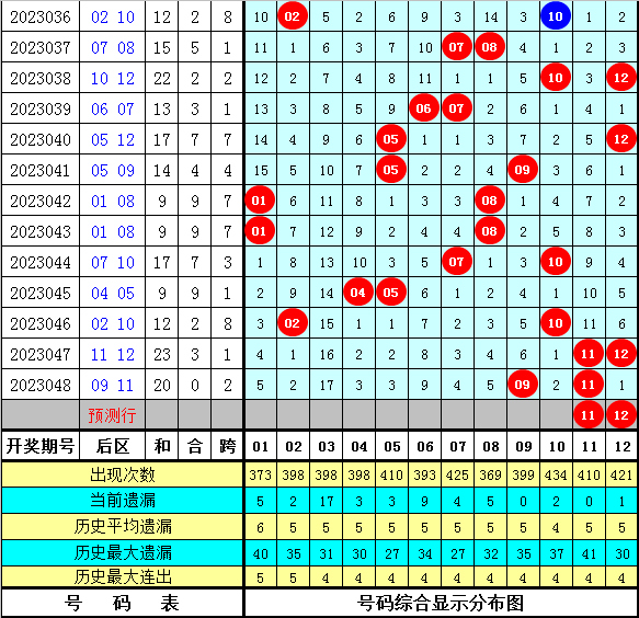 体彩大乐透第2023049期后区五码参考:01 05 08 11 12
