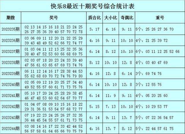快乐8第2023245期综合分析