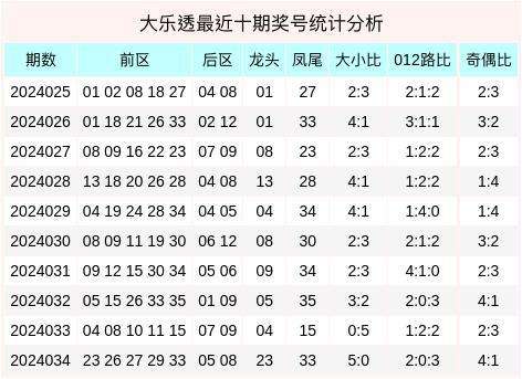 大小比分析:上期前区奖号大小比为5:0,最近10期前区大小比为28:22,大号较热,本期注意小号热出,参考大小比2:3。