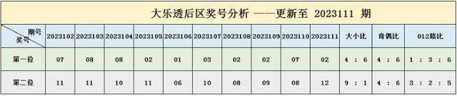 大乐透第2023111期奖号为:前区03 12 15 28 35;后区号码为02 12。前区号码大小比为2:3,三区比为2:1:2,奇偶比为3:2。后区开出偶偶组合。