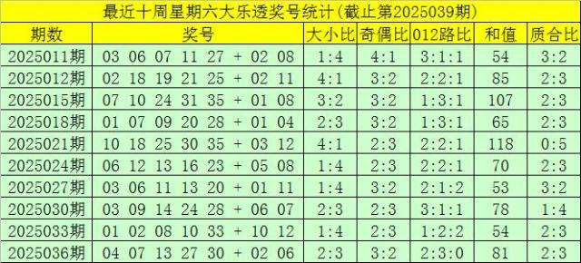 第2025039期大乐透星期六奖号分析: