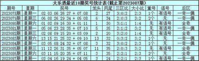 后区分析:上期后区为一奇一偶号码04+05,最近10期后区号码奇偶比为14:6,最近50期后区奇偶比为57:43,本期后区参考一奇一偶组合,关注两码02、03。
