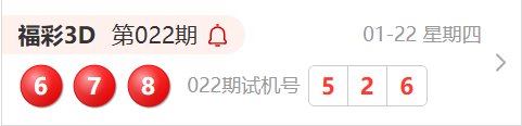 福彩3D第022期开奖结果为:678