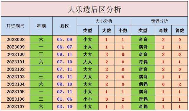 上期开出后区号码03、10,为小大、奇偶组合。
