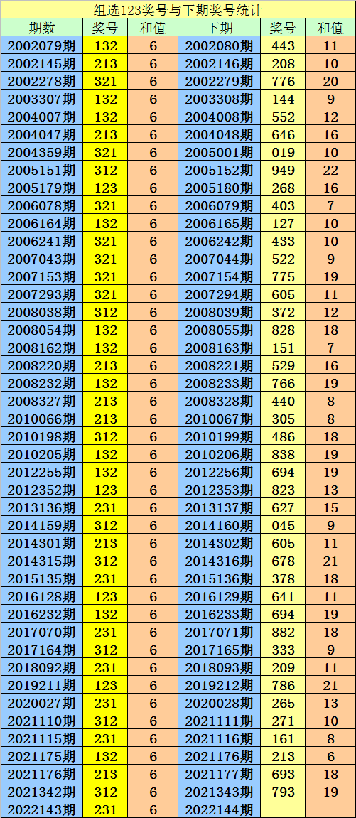 第2022143期3D奖号组选为:123,历史上该号码组选出现44次,下期号码分别为:443、208、776、144、552、646、019、949、268、403、127、433、522、775、605、372、828、151、529、766、440、305、486、838、694、823、627、045、605、678、378、641、694、882、333、209、786、265、271、161、213、693、793。