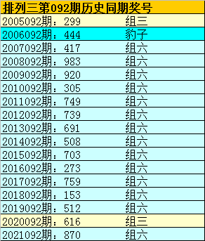 则,排列三第2022086期奖号:935,与排列三第2022092期奖号可能有相同的号码。且排列三第2022092期奖号大小比、奇偶比和012路比可以参考第2022086期奖号形态:大小大、奇奇奇和002路。
