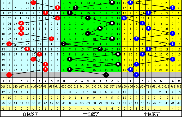 其中,号码0-9开出次数分别为:号码0开出1次、1开出4次、2开出2次、3开出5次、4开出4次、5开出1次、6开出3次、7开出2次、8开出6次、9开出2次。