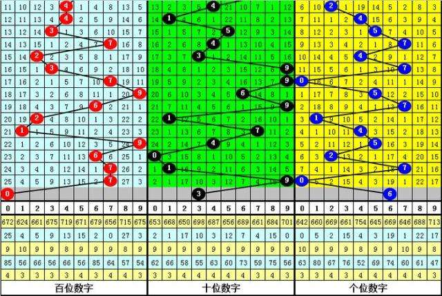 百位分析:该位上期奖号为7,出现1路、奇数、大号,在前11期奖号,该位012路比为5:4:2,2路号码较少,目前012路号码遗漏期数分别为2、0和5,近期百位注意0路号码走热。