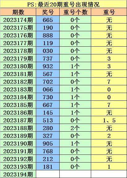 开奖回顾:福彩3D第2023193期开出奖号:181。