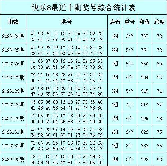 福彩快乐8第2023133期开出奖号:08 11 13 14 18 19 20 25 29 31 36 39 40 45 47 51 63 64 65 70,其中奖号和值为708,跨度为62,包含3个重号18、19、64,包含连码13 14、18 19 20、39 40、63 64 65。