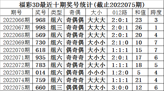 第2022077期福彩3D直选类型参考:合质合、大大小。