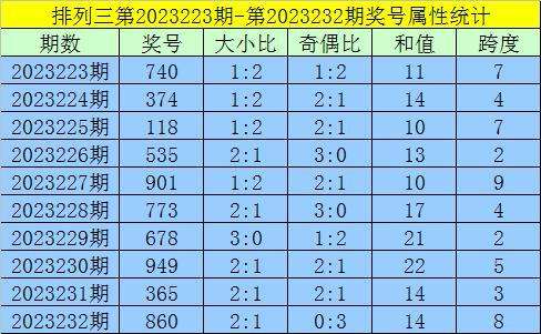上期回顾:排列三第2023232期出现奖号860。开出组六,奇偶比0:3,012路比2:0:1,大小比2:1,和值14,跨度8。