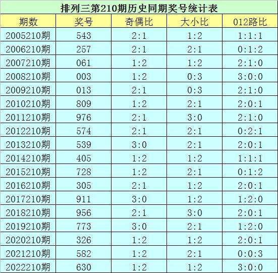 排列三第2023210期开奖日期:2023年8月8日,历史上第210期已开出了18次奖号,历年同期号码分别为:543、257、061、003、013、809、976、574、539、405、728、305、911、956、773、326、582、630。