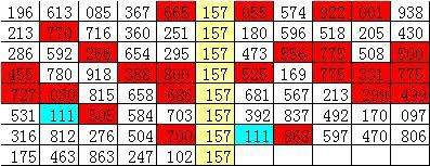 在以上统计表中,组选号码157开出之后,其下期豹子号码出现2次,组三号码出现12次,组六号码出现19次。其中,下期奖号有12期无重号,有21期开出重号,本期排除重号,看好开出组六号码。