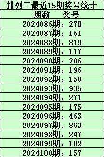 开奖回顾:排列三第2024100期开出奖号:157,其类型为:组六,直选形态为:奇奇奇、小大大、121路、热温热、质质质。