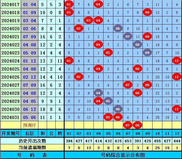 前区重号分析:上期前区开出2重号:09、30,重号在前7期开奖中出现4期,开出比例为57%,共出现6个重号,本期预计重号再次出现,看好1个,注意重号12。