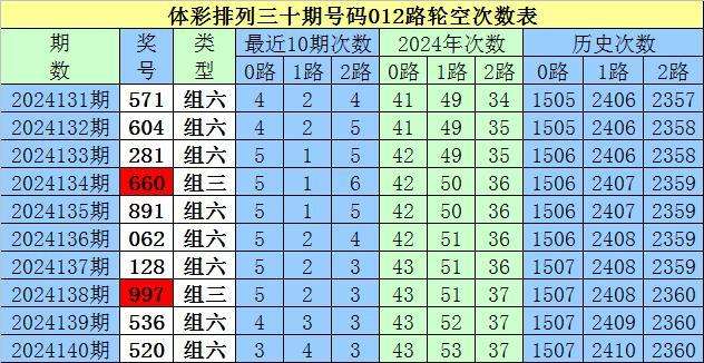 开奖回顾:排列三第2024140期奖号为:520,号码012路比为1:0:2。