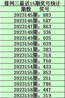 开奖回顾:排列三第2023159期开出奖号:319,其类型为:组六,直选形态为:奇奇奇、小小大、010路、温温温、质质合。