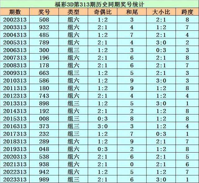 福彩3D历年第313期同期奖号为:508 932 485 789 300 196 178 663 586 180 743 898 192 008 373 232 289 048 538 938 942 989。