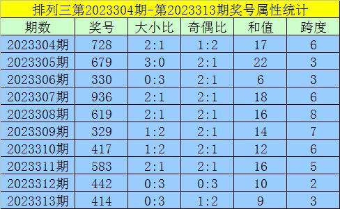上期回顾:排列三第2023313期出现奖号414。开出组三,奇偶比1:2,012路比0:3:0,大小比0:3,和值9,跨度3。