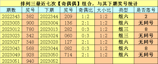 奇偶分析:排列三上期奖号为940,其奇偶类型为【奇偶偶】,最近七次出现奇偶类型奇偶偶的号码分别为:382、900、780、342、348、568、928,其下期奖号分别为:382、900、780、342、348、568、928。其中号码奇偶比为7:14,奇数奖号开出比例较低,本期注意奇数回补的可能,关注奇偶比2:1。