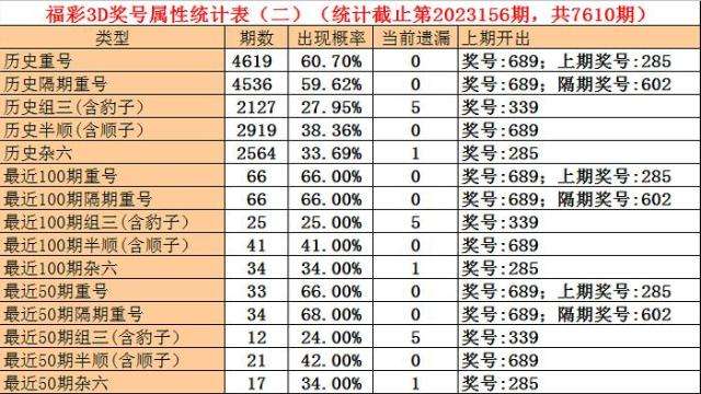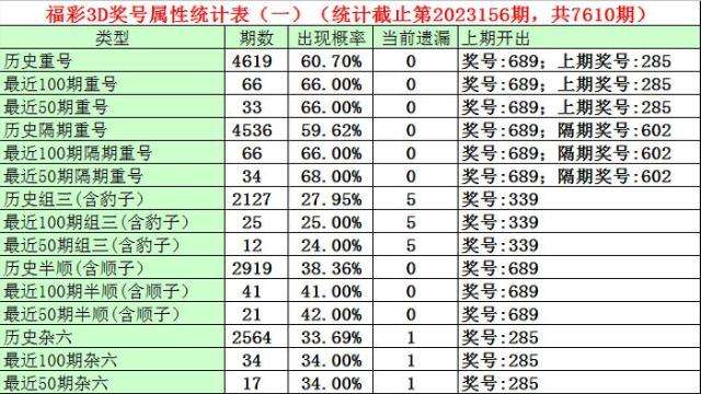 上期奖号:福利彩票3D第2023156期开出奖号689。