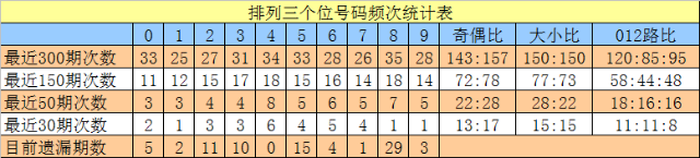 十位号码:前50期走势最活跃的号码为:5开出9个,4开出8个,2、6、7开出5个;走势最冷的号码为:0、8开出3个,1、3、9开出4个。十位号码012路比开出16:17:17,大小比开出26:24。本期十位排除两码:0、6,参考号码2、5、8,胆码关注2。