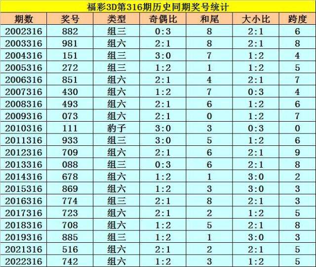 福彩3D历年第316期同期奖号为:882 981 151 272 851 430 493 073 111 933 709 088 678 869 774 723 708 885 516 742。