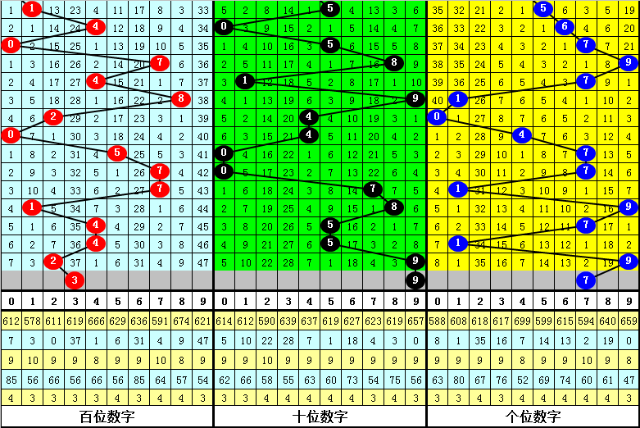 3、在以上0-9号码频次中,号码奇偶比为30:43,大小比为31:42,本期预计百位开出小号,参考号码3。