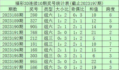 198期李笑岚福彩3D预测奖号:双胆参考