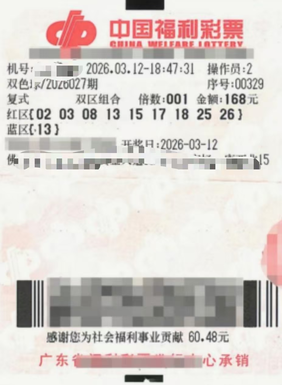 2026年3月12日晚,中国福利彩票双色球第2026027期开奖,来自佛山市三水区xxxxx福彩销售站点的一张"9+1"复式票成功命中当期一等奖1注,奖金总计441万余元。这是佛山市2026年中出的首个双色球一等奖,为当地彩市带来了开门红。