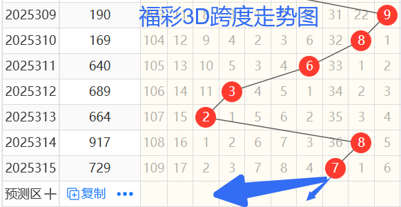 依次是63287跨度,按照路数转换关系来看,那么跨度我们暂定258369跨 ,本期个人比较看好2 6跨。