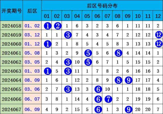 前一区(01-12):最近10期共开出14个号码,出号较冷,该区奖号本期关注:03、08。