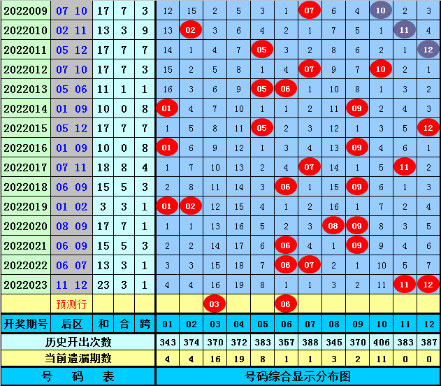 后区分析:上期后区开出2路+0路奖号11+12,最近10期后区奖号012路比为10:5:5,本期防全0路组合再出,精选两码03、06。