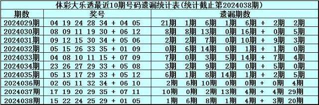 体彩大乐透第2024038期奖号为:15 22 24 25 29 + 01 05,前区号码奇偶比为3:2,大小比为4:1,和值为115,012路比为2:2:1,后区号码奇偶比为2:0,大小比为0:2。