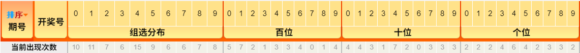 跨度分析:上期跨度1为极小跨度。根据跨度振幅规律,本期跨度有望大幅回升。重点关注4,5,6等中等跨度值。
