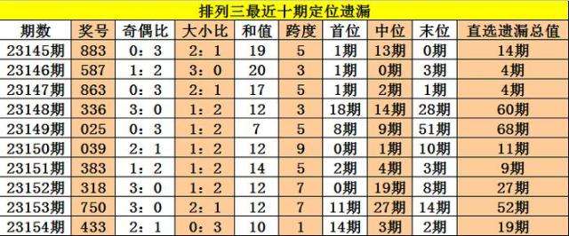 开奖回顾:排列三第2023154期奖号:433,定位直选遗漏值14期、3期、2期,遗漏总值为19期。