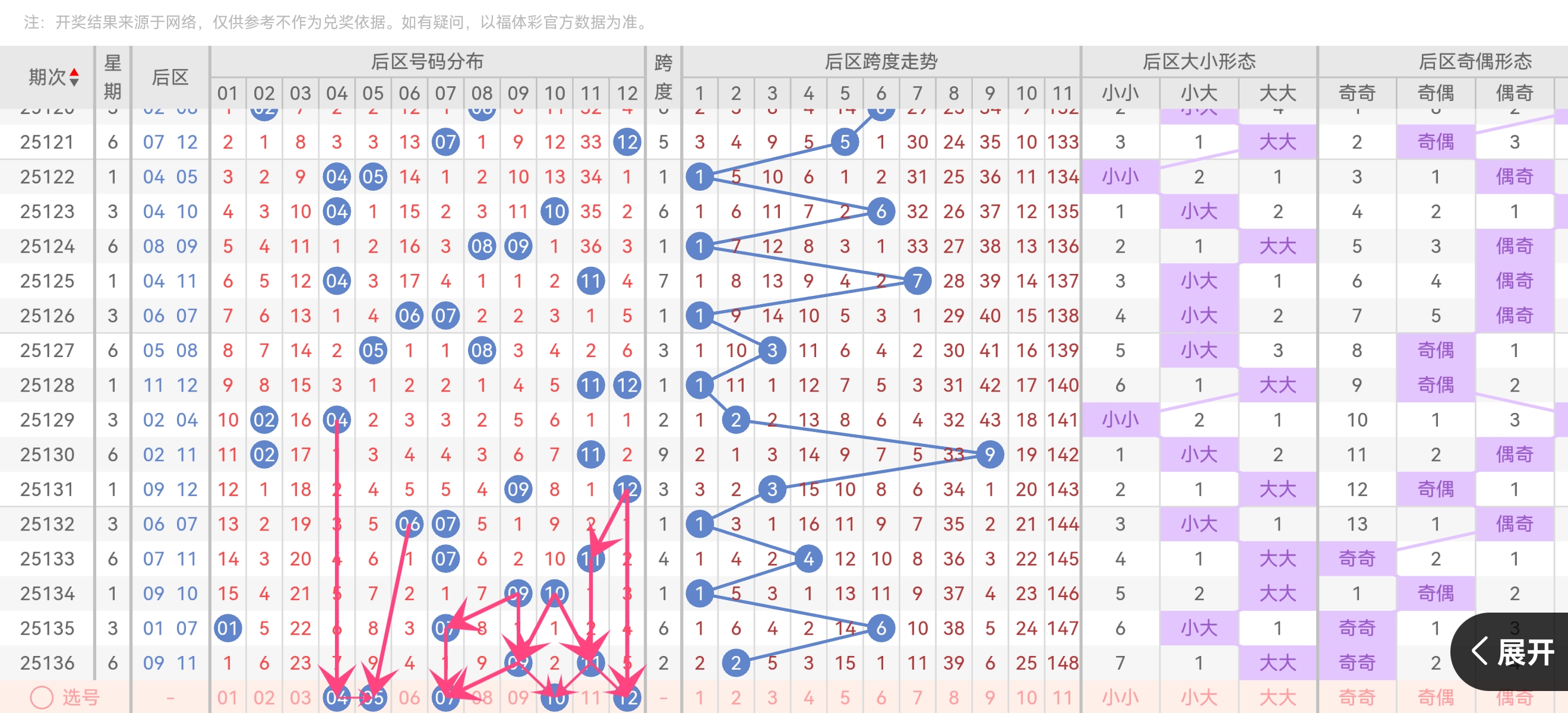 重号 :上期后区无重号→ 热势中断,本期排除重号 (不选09/11)。