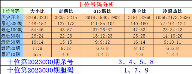 近期个位合数号码出现频率较低,上期出现之后,本期预计合数连续回补;近期该位大号走势较冷,最近5期连出大号,大号走势转热,本期预计再出大号。个位杀号:0235,胆码关注:479。