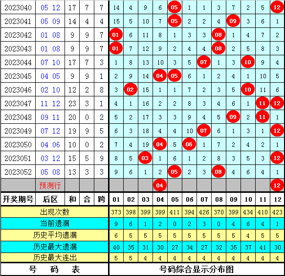后区分析:上期奖号为一奇一偶组合,本期预计偶数号码转热,看好出现全偶组合,两码关注:04 12。