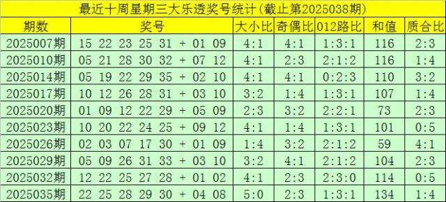 后区分析:最近10周星期三一大一小开出7次,全大开出2次,全小开出1次;全偶开出2次,一奇一偶开出5次,全奇开出3次,本期后区注意两码02+03。