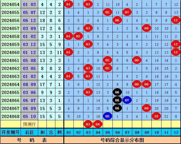 后区奖号分析:上期后区开出奖号05+10,奖号和值为15,跨度为5,本期预计后区和值转小,关注两码03 04。