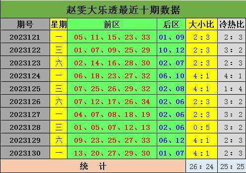 131期赵雯大乐透预测奖号:大小分析