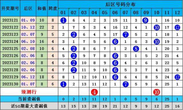 后区第二位:上期开出后二号码07,较上期下降5点。近十期后二号码大号开出7期,小号开出3期,大号走势较高。本期后二看好号码10