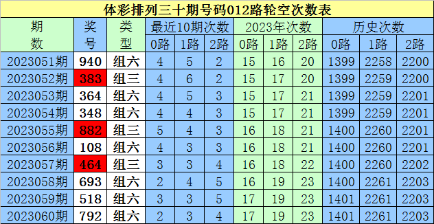 0路号码上期开出1个,近10期共出现13个表现相对活跃,其中0开出2个、3开出5个、6开出3个、9开出3个,本期应注意0路号码回补,参考号码0、6。