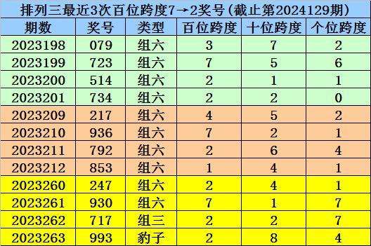 第2023260-第2023262期奖号:247、930、717,其下期奖号为:993,首位号码跨度为2;