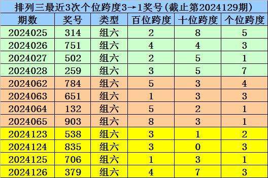 第2024123-第2024125期奖号:538、835、706,其下期奖号为:379,末位号码跨度为4;