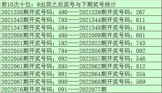 上期回顾:福利彩票3D第2022076期开奖结果:奖号为091,奖号和值为:10,奖号跨度为:9,奇偶形态为:偶奇奇,大小形态为:小大小。