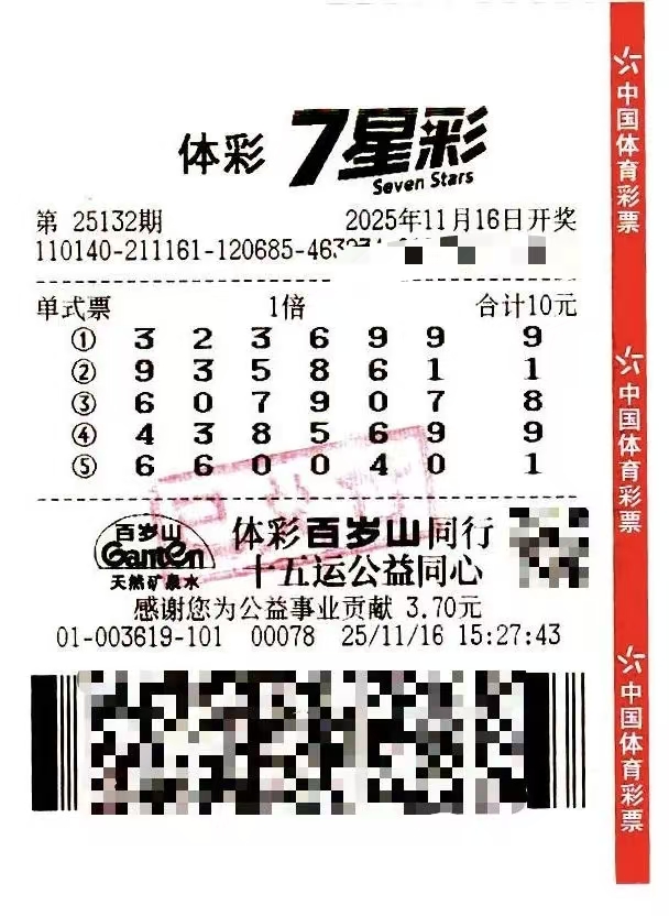 2025年11月16日,7星彩第25132期开奖为山西彩市带来振奋人心的好消息——全国唯一1注一等奖花落太原,单注奖金高达500万元。11月25日,幸运中奖者现身山西省体育彩票管理中心,低调完成兑奖手续。