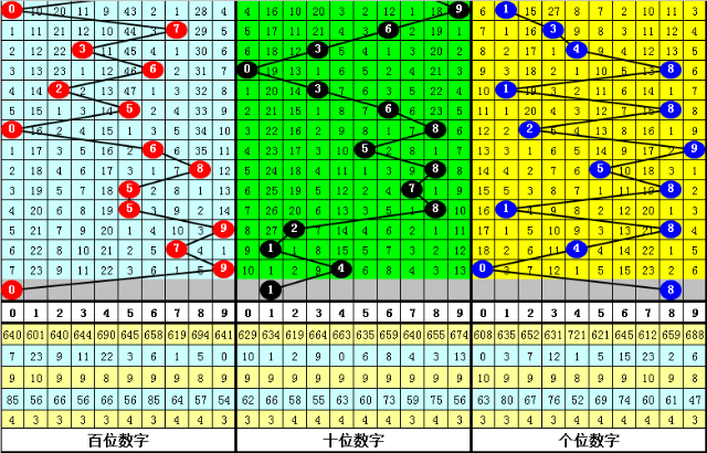 百位:下期开奖百位以1路和2路号码为主,0路号码没有出现,表现非常冷,本期注意0路号码回补,参考号码0。